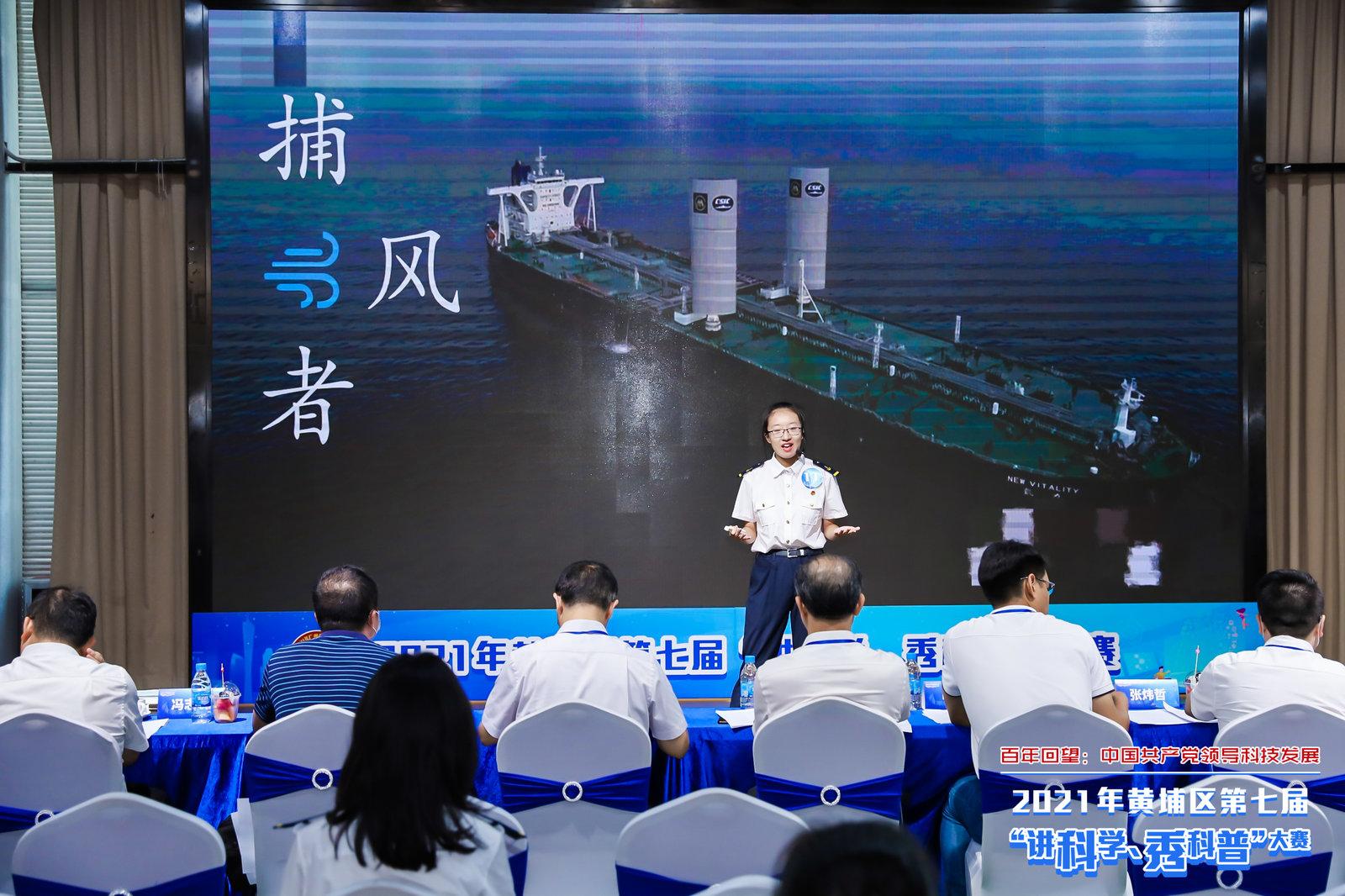 我校选手立足学科特色给现场观众带来了《捕风者》、《大国重器之“海上大力神叉车”》等作品,介绍了与航海相关的科普知识。选手们以严谨的态度、生动的语言、饱满的激情,通过科学动画、视频等多媒体表现形式,赋予了科普讲解独特的魅力,展示了我校学生良好的精神风貌和专业素养。