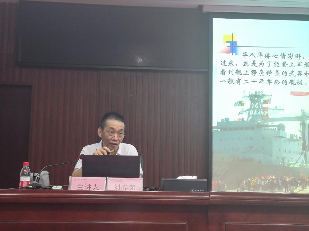 根据学校入学教育安排,于行政楼A楼六楼报告厅举行两场“护航船长讲海防”专题报告会。此次报告会邀请刘春荣、陈昌明两位护航船长以亚丁湾护航经历讲海防、讲航海。本次报告会由辅导员钟聪仕老师主持,辅导员何淋老师带领p站视频
