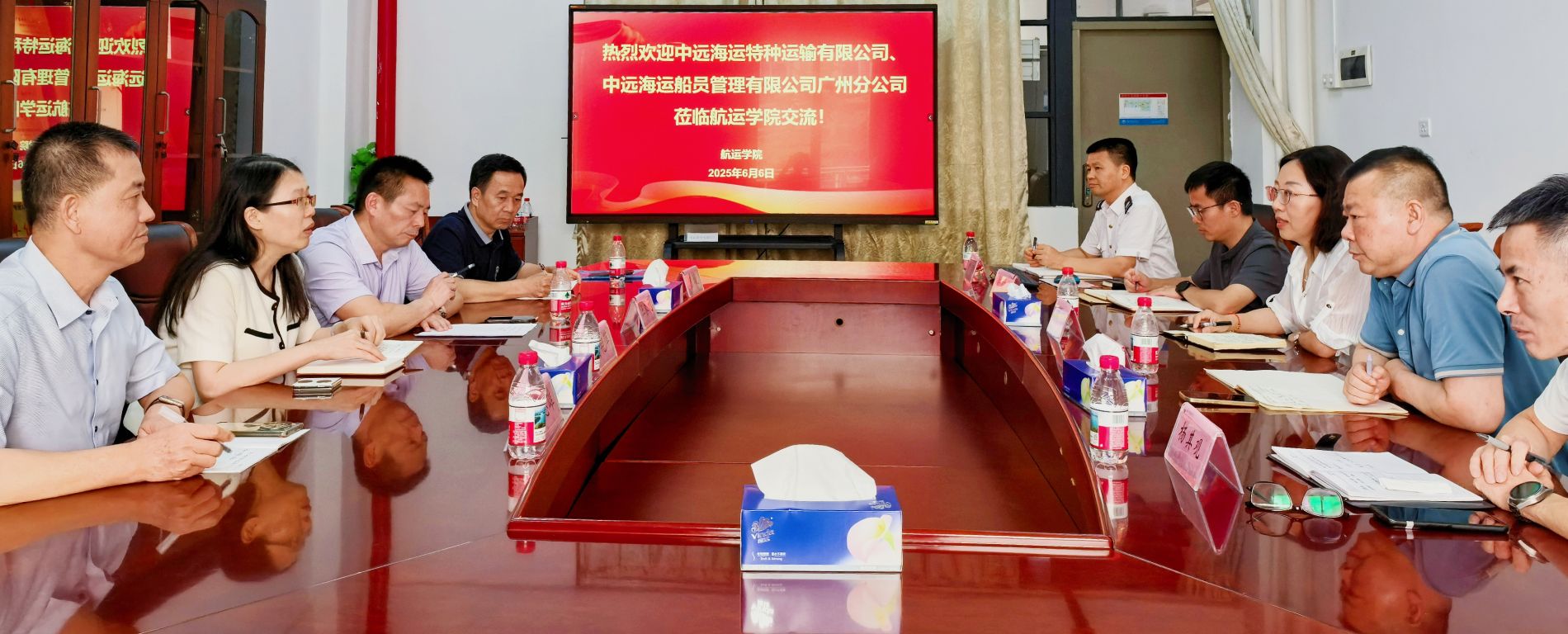 (p站视频 供稿)6 月 6 日,中远海运特种运输股份有限公司船舶管理部党委书记曾艳萍及中远海运船员管理有限公司广州分公司副总经理汪家元一行到访p站视频 ,学院党委书记周楠、院长魏安等热情接待。双方在B7航海楼514会议室,围绕“完善联合培养高素质航运人才新模式”主题展开深入探讨。