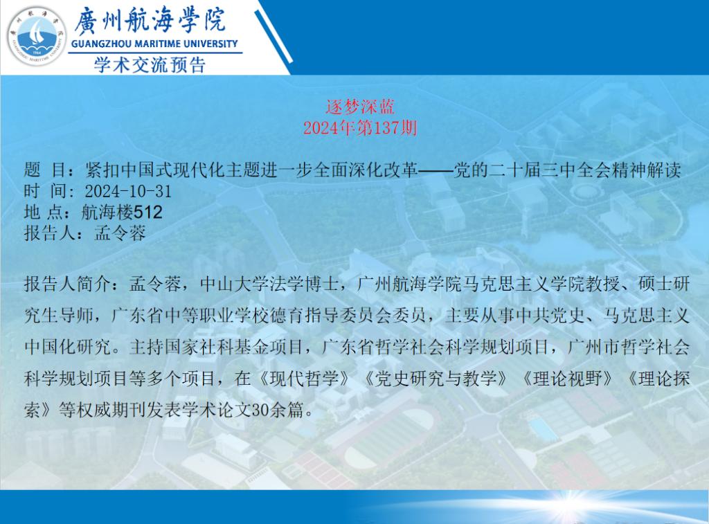 深蓝论坛学术讲座预告:孟令蓉教授《紧扣中国式现代化主题进一步全面深化改革——党的二十届三中全会精神解读》