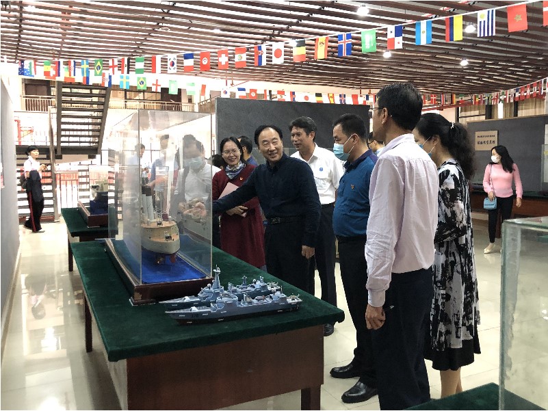 戈飞平副校长陪同方真副校长一行参观了海洋史馆和航海教学高仿真模拟器,并简要介绍了我校航海教学情况和办学特色。