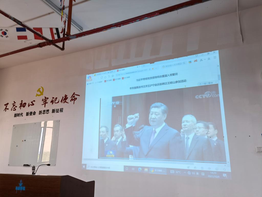 会上,全体教工集中观看了《习近平在广西考察时强调 解放思想深化改革凝心聚力担当实干 建设新时代中国特色社会主义壮美广西》和《习近平参观“‘不忘初心、牢记使命’中国共产党历史展览”》视频。