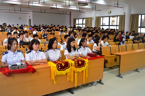 随后,林少栋老师向运动员代表授旗并向全体参赛学生强调,一是运动员要保持良好的作息时间及训练节奏,积极参赛;二是宿舍成员要为运动员营造一个良好的作息环境;三是班级同学要为运动员送温暖保后勤;四是分团委学生会要组织全体学生干部做好各项趣味运动的参赛项目及保障工作。最后,林老师希望全体运动员能够发扬“更高、更快、更强”的体育精神,积极备赛,在校运会中彰显拼搏奋进和团队合作精神,力争取得优异成绩,同时以校运会为契机,加强日常锻炼,强健体魄,磨炼意志。