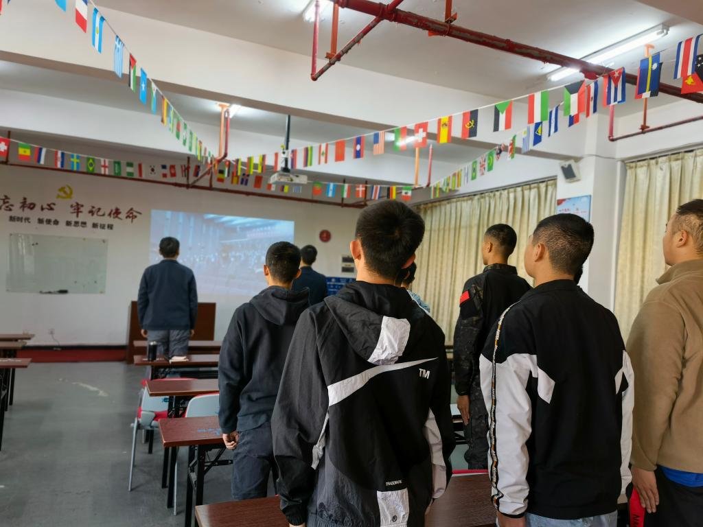 上午九时,随着五星红旗冉冉升起,在场全体师生肃立合唱《义勇军进行曲》。在教育部领导的领读下,在场师生跟读宪法条款,认真聆听教育部领导的讲话。