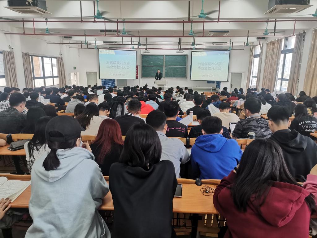 (海运学院供稿)2021年12月9日,海运学院在健兵北400教室召开2022届毕业生教育大会,海运学院大队长林少栋老师、红山派出所吴清达警官、2022届毕业生中队长及全体毕业班同学参会。