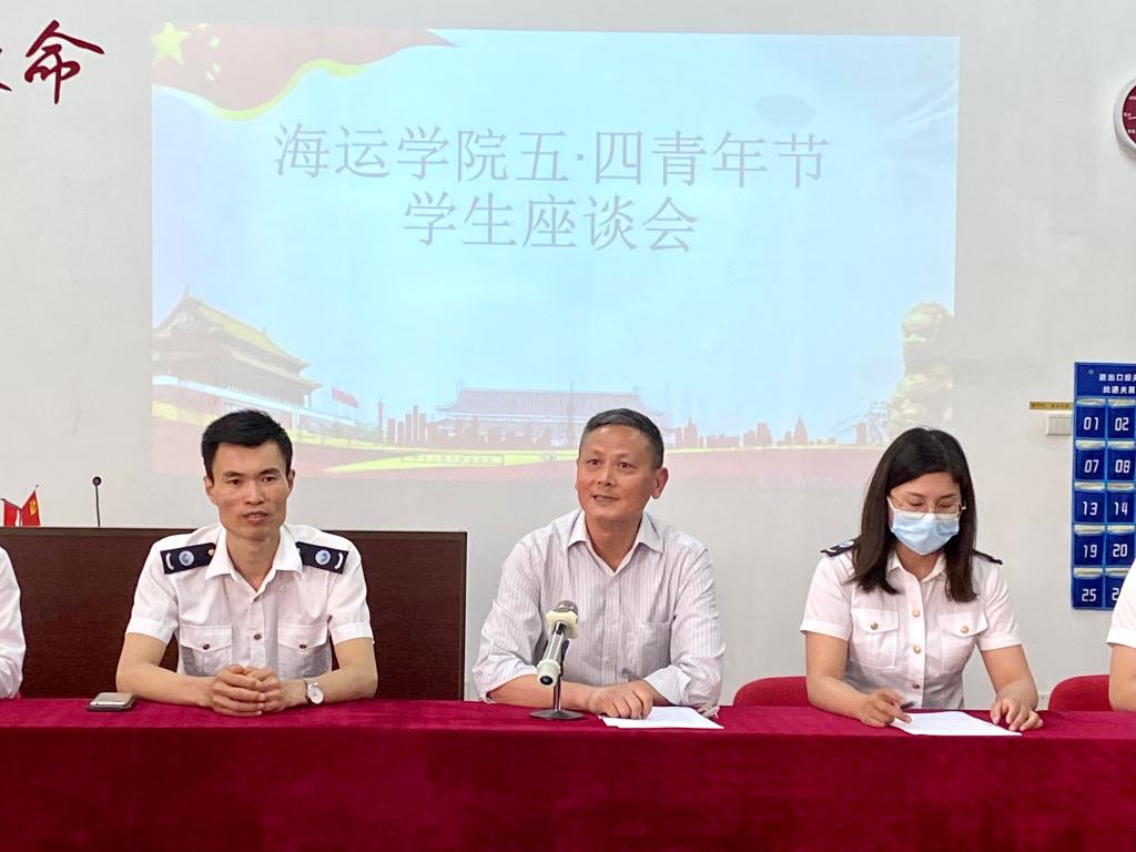 (海运学院供稿)5月5日下午,海运学院在航海楼512室召开五·四青年节学生座谈会,海运学院党委施斌书记,副书记林少栋老师,中队长何淋、张春艳、吴成结、陈岸斌等老师以及海运学院六十多名青年大学生代表参加了座谈会。