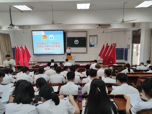 海运学院学生会章程(草案)》。各学生代表代表广大同学对学院的工作提出了意见和建议,共同参与学院治理。接着,新一届学生会主席团候选人进行竞选演讲,学生代表以无记名投票的方式进行差额选举,投票产生了新一届学生会组织主席团成员。