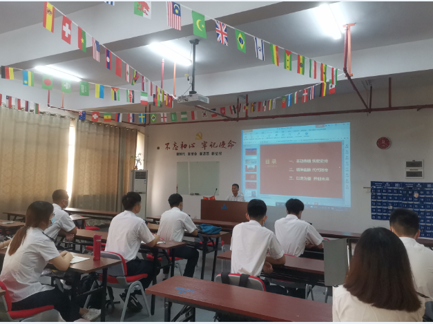 培训班第一课,党委书记施斌作了《奋斗百年路 启航新征程》主题党课。施书记以庆祝中国共产党成立100周年大会引入,结合党史,围绕党百年来带领人民取得的丰功伟绩,以实现中华民族伟大复兴为主题,强调同学们要成为有理想、有本领、有担当的党的建设事业接班人,用实际行动迎接党的二十大召开。