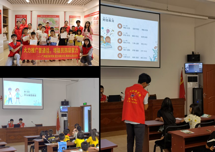 8月2日下午,队员们组织当地小学生,通过普通话科普、普通话互动游戏等形式,向孩子们展现了普通话的魅力。同时,为了引导孩子们加强党性认识,队员们为当地小学生介绍了党的光辉历程,并开展了“学画党旗”小课堂,让孩子们在趣味活动中坚定了一心向党、紧跟党走的信念,赓续传承红色血脉。