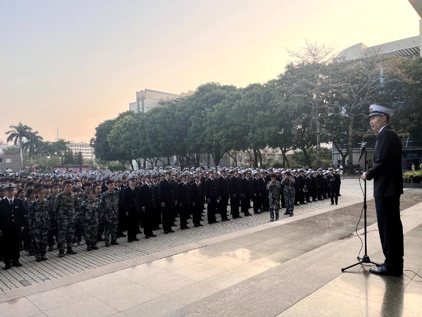 (海运学院供稿)春风送暖,共赴新程。为加强学生爱国主义教育,深化半军事管理内涵建设,3月6日上午,海运学院在海燕广场开展新学期升旗仪式暨主题教育活动。海运学院大队长林少栋老师、中队长何淋、叶振斌、陈岸斌、林恬恬等老师和全体学生参加本次活动。