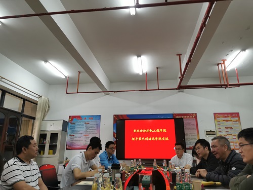 张海波书记代表海运学院对容柏清书记一行表示热烈欢迎,简要介绍了海运学院学生管理工作及思想政治工作的基本情况,期望与轮机工程学院加强沟通与合作,共同谋划举办“航海特色文化周”。容柏青书记表示两个学院共同肩负着培养航运人才的使命,希望能够与海运学院互学互鉴、取长补短,推动两院共同发展进步。容书记提出了“航海特色文化周”的基本思路与设想。与会人员纷纷发言,提出要以航海文化为底色,以本次联合举办“航海特色文化周”为契机,推动航海文化和学校半军事管理工作向深向实发展,营造浓厚的航海特色文化氛围。