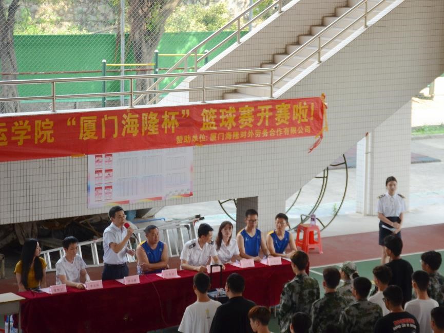 (海运学院供稿)为丰富校园文化生活,增强学生体质,提高学生团队意识,9月21日,海运学院在南区篮球场举行2023年“厦门海隆杯”篮球赛开幕式。厦门海隆对外劳务合作有限公司副总经理洪玉成、副经理李忠华、主管张悦文,海运学院党委书记张海波、副书记林少栋及中队长、参赛运动员代表参加开幕式。