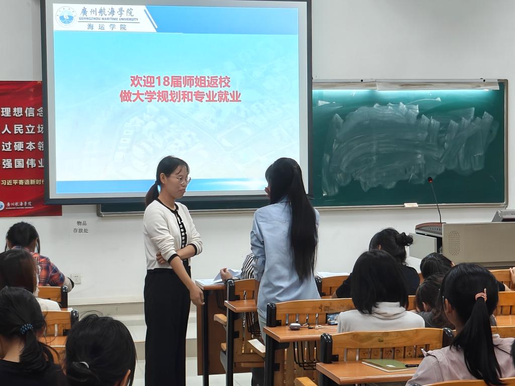 (海运学院供稿)11月12日晚,海运学院邀请广州港引航站现担任政工室政工员李圣媛和广州市黄埔区联和街道办事处党建指导员詹志琴在健兵南302教室为我院23级海事管理作“谈大学生活,看就业前景”主题分享会,2023级海事管理专业全体同学参加了分享会。