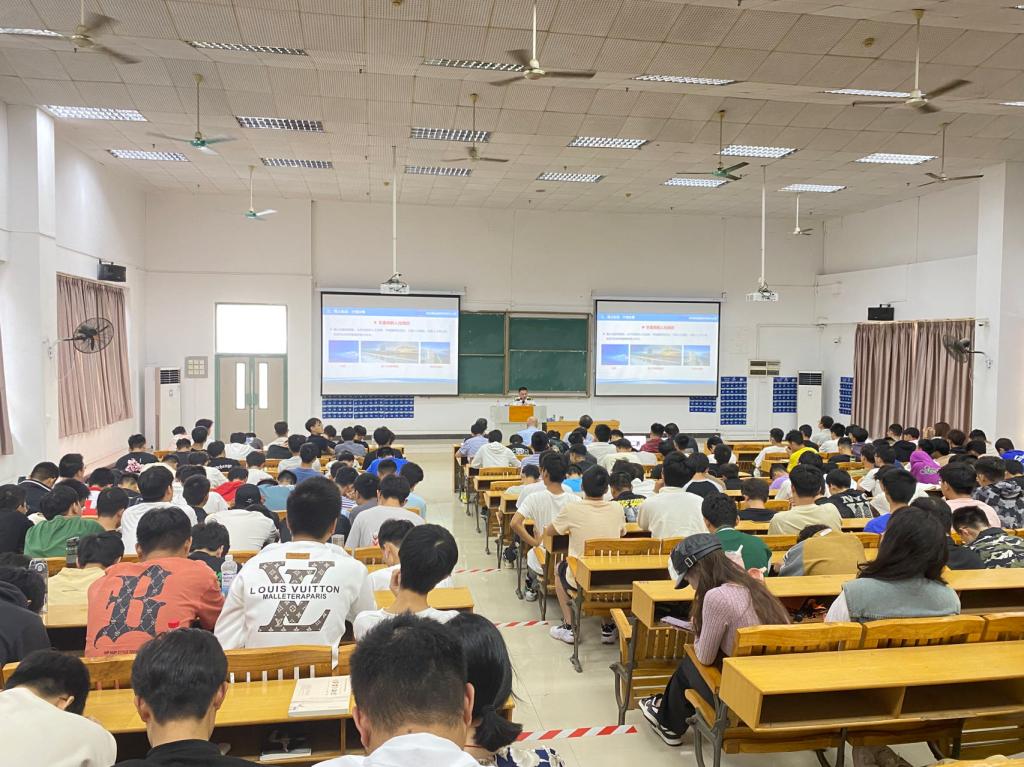 余船长首先带领大家回顾了中国航海的历史,让大家领略中国航海悠久的历史和文化。随后,他详细讲解了中国近现代航海的发展史,并介绍了中远海运集团对祖国航运事业的巨大贡献,让师生更加直观的感受到中国近现代航海发展的巨大变化。他通过一个个短视频及图片展示了船员在船上生活的日常片段,让大家走近船员的工作和生活环境。在讲座的最后,余船长列举了几位航海界的前辈标杆,鼓励大家以他们为榜样,并勉励同学们在大学期间应该做到:加强基础知识学习、学好专业文化课、注重身体锻炼、培养兴趣爱好。他以“长江后浪推前浪,一代新人换旧人”的名句结束了讲座,鼓励大家在大学期间充分发挥自己的才能,勇敢地追求梦想,为实现海洋强国、航运强国做出自己应有的贡献。