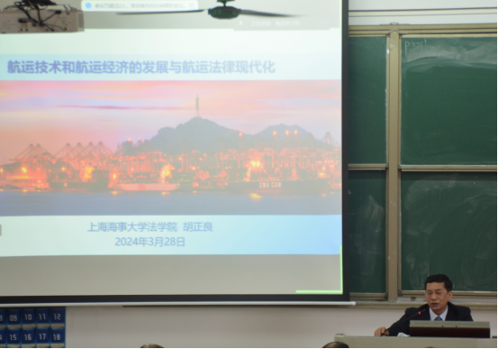 (海运学院供稿)3月28日,健兵楼101室座无虚席,我校海商法研究中心邀请到我国著名的海商法教授胡正良老师莅临我校为师生开展学术讲座,讲座主题是《航运技术和航运经济的发展与航运法律现代化》。讲座伊始,主持人转达了学校领导对胡教授莅临我校表示热烈欢迎和衷心感谢。
