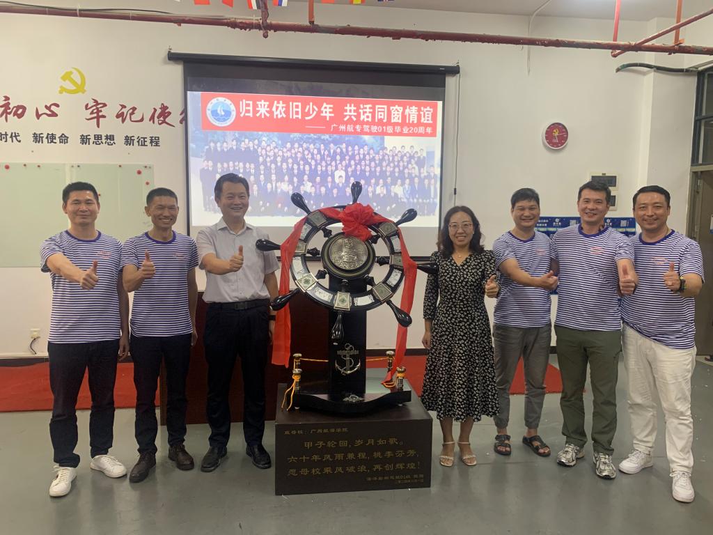 座谈会后举行了捐赠仪式。为感谢母校的培养和对母校发展的美好祝愿,2004届海洋船舶驾驶专业校友向学校赠送了一件特殊的礼物——领航舵。校友们用这件寓意深远的礼物祝愿母校在新的历史机遇中把稳方向,乘风破浪,向着星辰大海跨步迈进,同时也寄托着校友对母校引领他们在人生旅途中扬帆起航的深情感激。