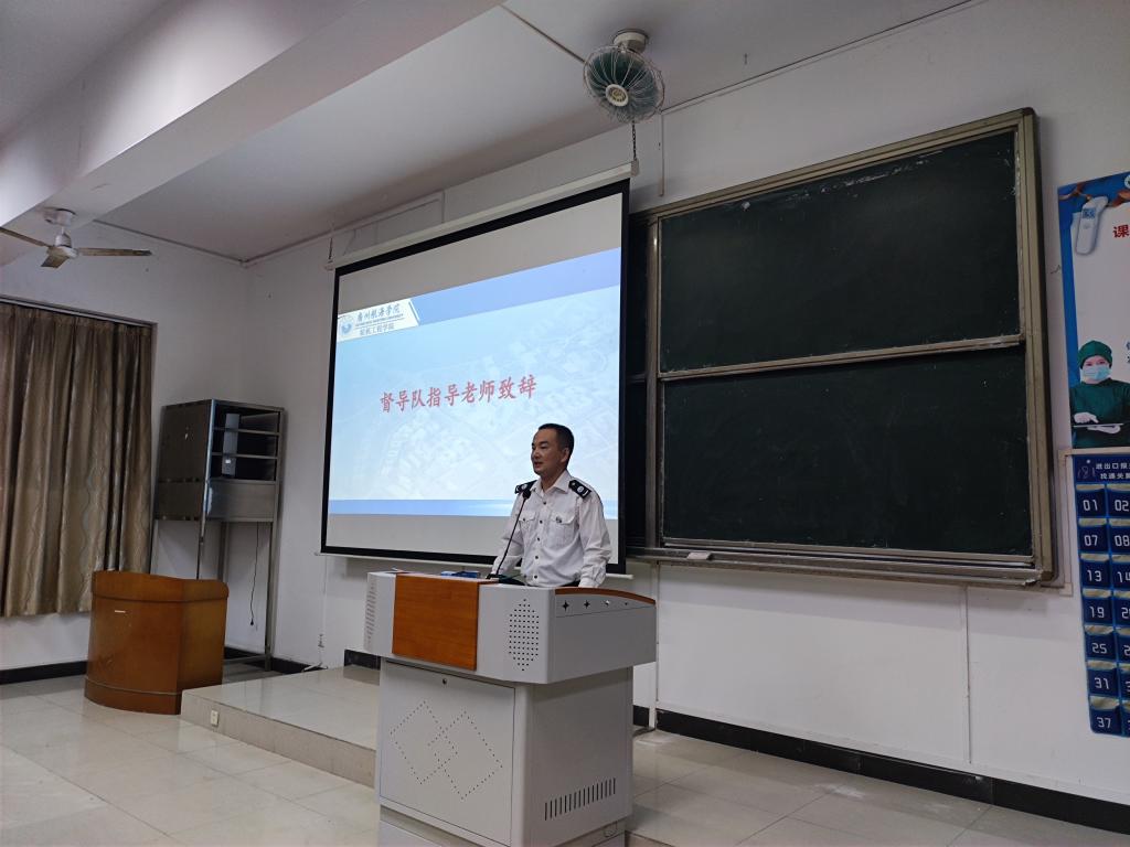 会上,指导老师赵垒代表学院半军事管理督导队对学校国旗队再次支持半军事管理骨干培训班表示衷心感谢,对学院同学积极报名参训表示肯定。赵垒老师汇报了第一期半军事管理骨干培训班取得的成绩,总结的成功经验,以及本期骨干培训班各项准备情况,希望所有参训同学严于律己、刻苦训练、用心学习,能够克服困难,坚持到最后,为学院半军事管理工作开展贡献力量。随后,国旗队队长朱坤豹发言,他对学院的认可表示感谢,并介绍了国旗队在总结第一次双方合作后,所做的各项改进,同时代表全体教官表态:教官将严格要求、认真组训,希望全体参训人员以高度的荣誉感和使命感参加训练,确保每一名学员学有所成。