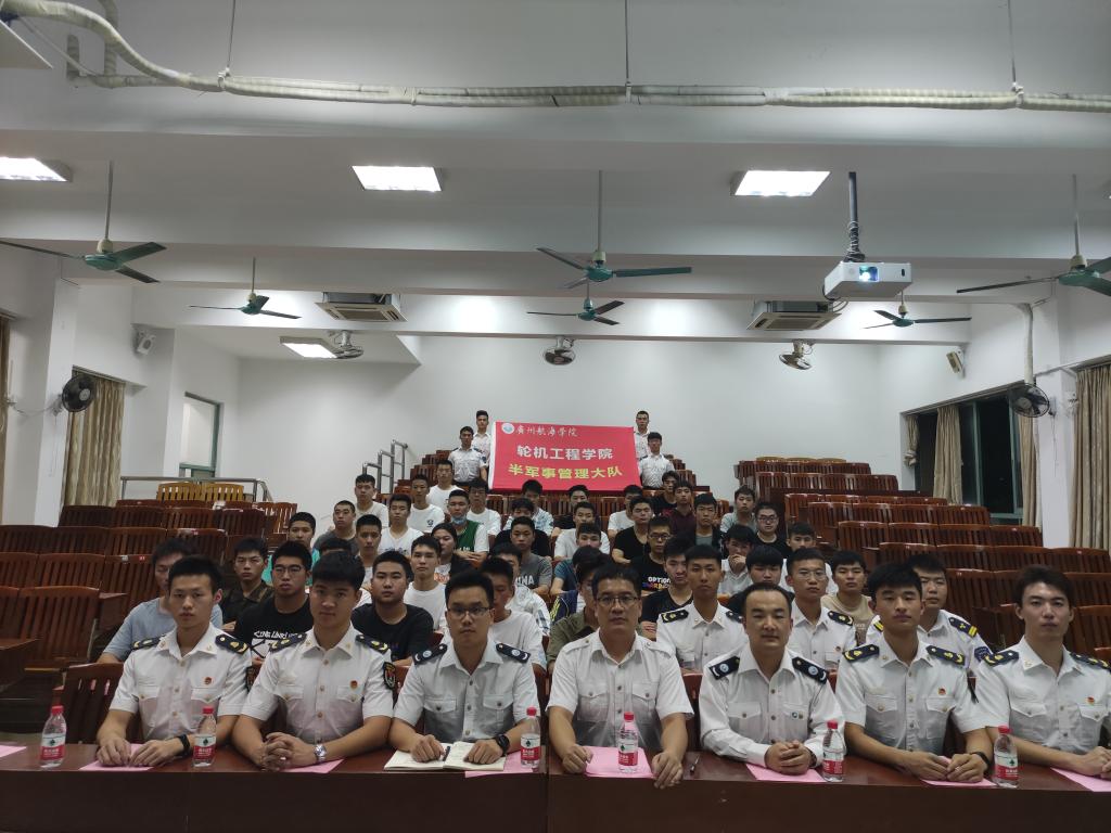 (轮机工程学院供稿)为更好满足用人单位对高素质航海类人才的需求,培养更多军政素质过硬的学生骨干,按照学院党委“我为群众办实事”实践活动工作方案的相关安排,10月18日晚,轮机工程学院在教学楼107召开第二期半军事管理骨干培训班动员会,学院党委副书记张志斌出席会议,中队长赵垒、郭世俊老师、学校国旗护卫队(以下简称国旗队)6名代表和培训班成员参加了会议。