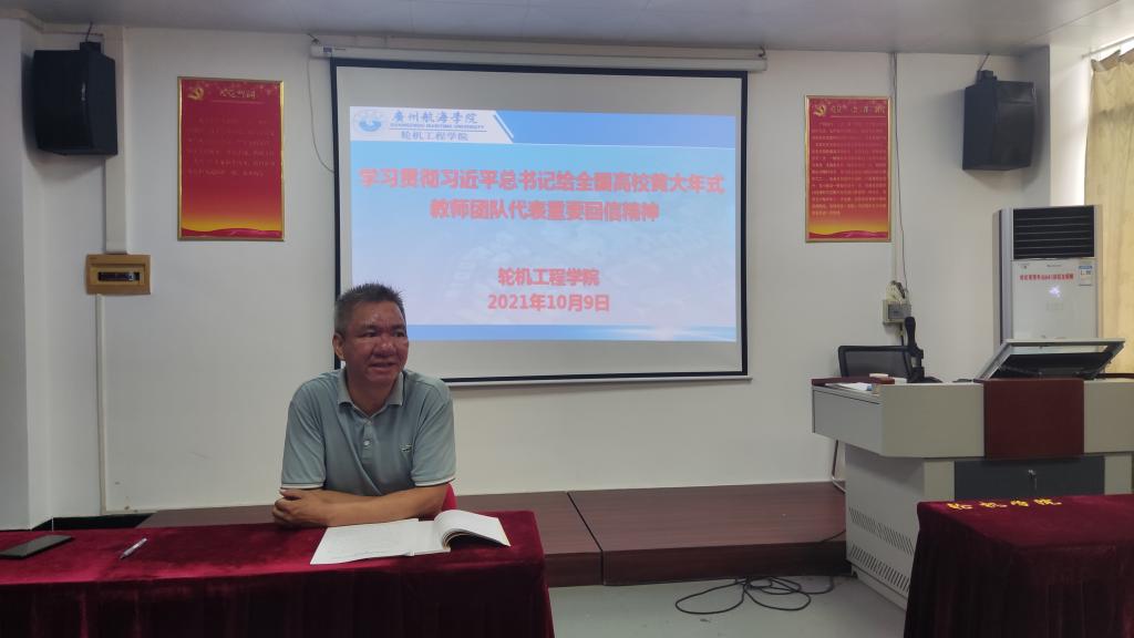 (轮机工程学院 供稿)根据学校《关于学习贯彻习近平总书记给全国高校黄大年式教师团队代表重要回信精神的通知》要求,10月9日,轮机工程学院在轮机楼511会议室召开全院教师大会,认真学习贯彻习近平总书记给全国高校黄大年式教师团队代表重要回信精神,会议由学院党委容柏青书记容柏青主持。