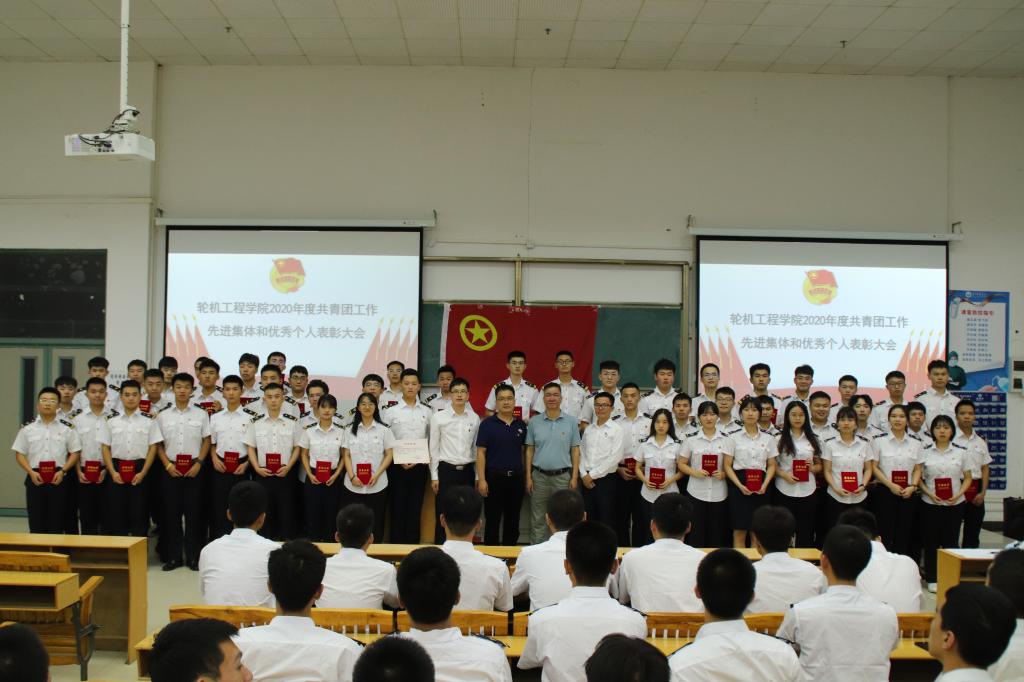 (轮机工程学院供稿)为表彰先进、树立典型,贯彻落实党建带团建工作,10月26日晚,轮机工程学院在教学楼111召开2020年度共青团工作先进集体和优秀个人表彰大会,学院党委容柏青书记、张志斌副书记、学生第二党支部书记钟聪仕老师、分团委书记陈茂嘉老师、受表彰的集体和个人、分团委全体干部以及各团支部委员共200多人参加了大会。