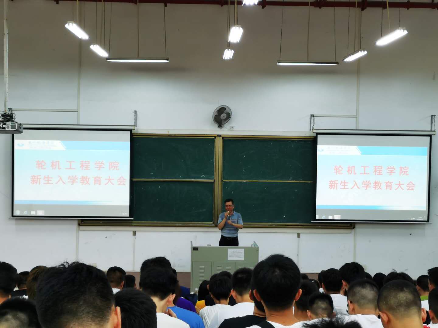 (轮机工程学院供稿)按照学院迎新工作计划安排, 9月17日下午,轮机工程学院在文理楼308教室召开了新生入学教育大会。轮机工程学院党委书记容柏青、副书记张志斌、全体中队长和全体2020级新生参加了大会。会议由张副书记主持,由容书记主讲。