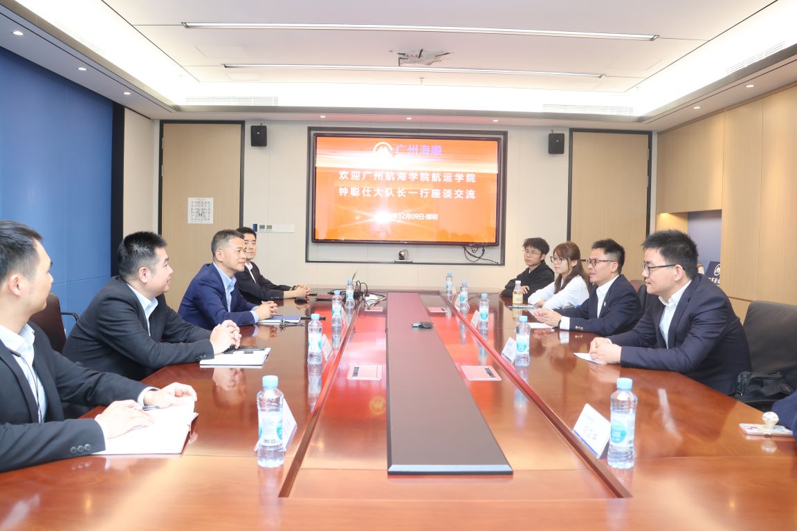 校友在公司发展状况等;谢元辉介绍了公司前期校企合作订单班的成功经验及未来合作培养计划等。钟聪仕介绍了目前学院在校生构成、人才培养及学生工作等基本情况。双方就进一步落实校企合作协议,共同引导航海类专业学生认识航运业、增强专业认同感和坚定投身航运业等方面进行了具体交流和探讨。期间,学院老师看望了在广州海顺船务有限公司工作的优秀毕业生驾驶104黄兴新等五名校友,了解校友在公司发展情况并给予鼓励。