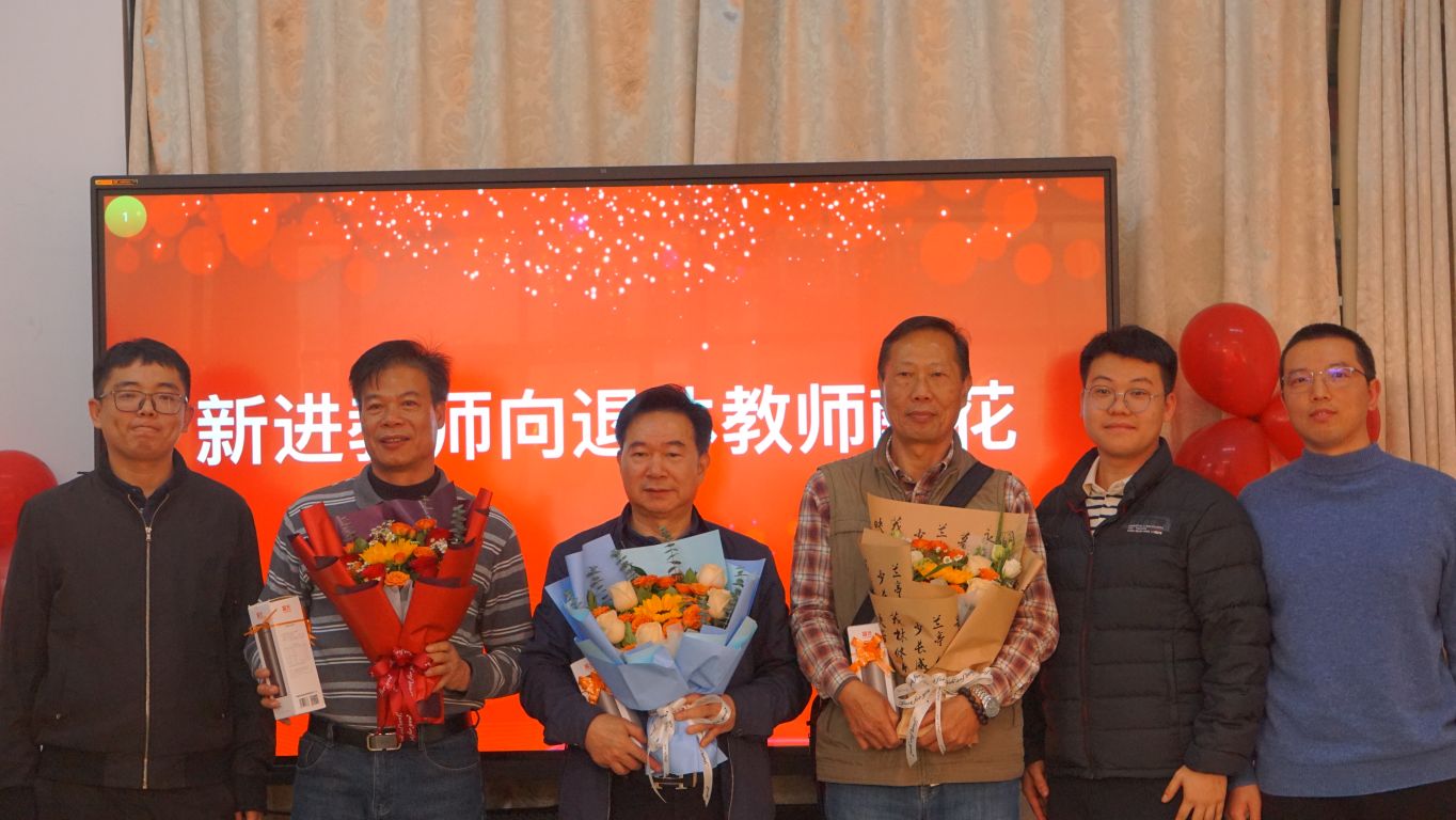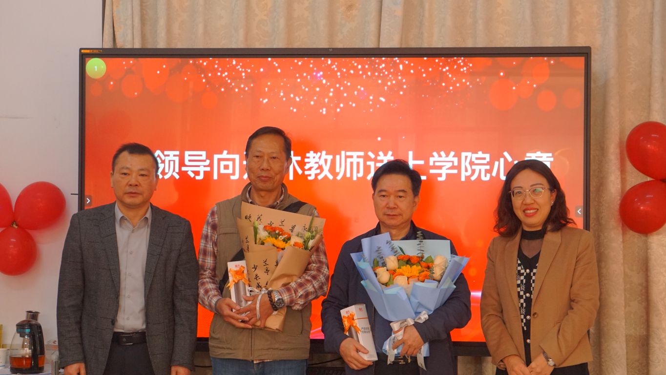 5位老师在教育的征途上,用知识的甘露浇灌学生的心灵,用青春的热血续写文明的篇章,为学校的发展和学生的成长贡献了智慧和力量,奉献了宝贵的青春。青年教师代表王琎宇、耿春辉、高玉龙为退休师长献上了鲜花,院领导送上了寓意深远的纪念品,以表达最深的敬意和祝福。
