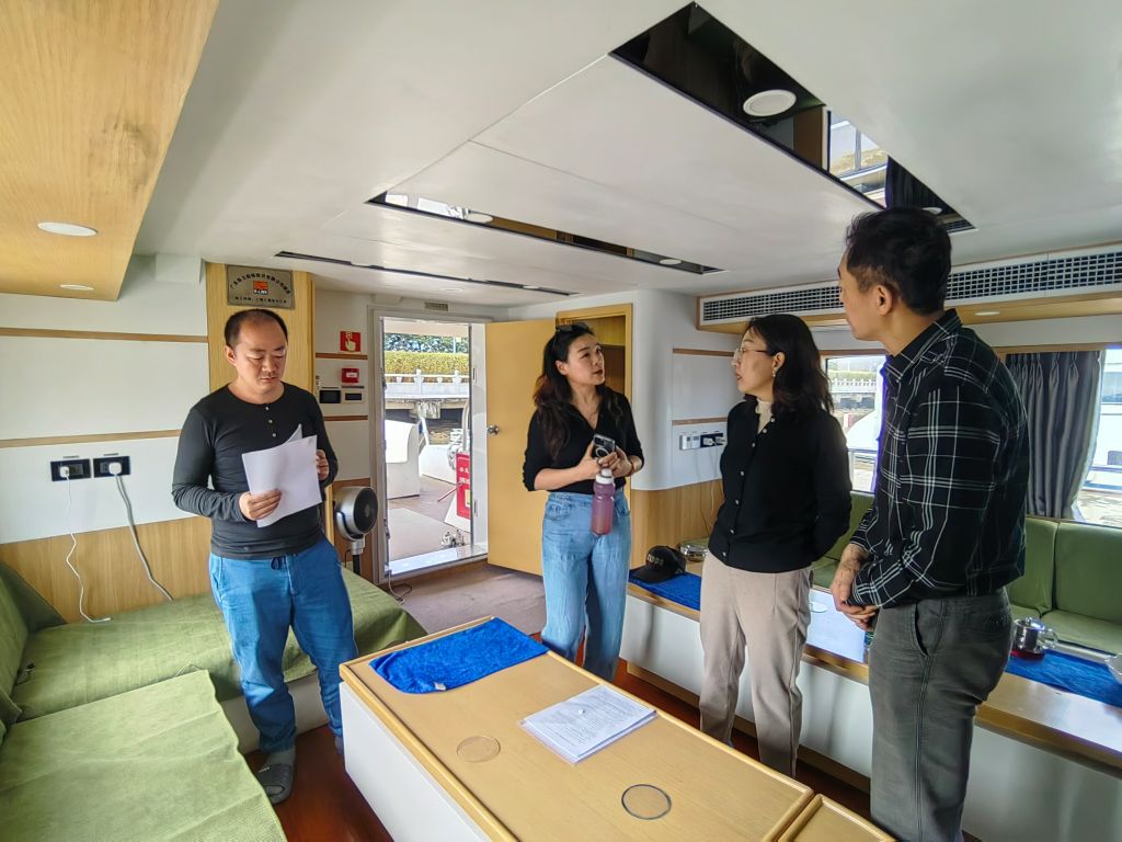 党委书记周楠带队到停泊于黄埔长洲岛游艇码头的“广航1”教学训练培训艇进行安全检查。