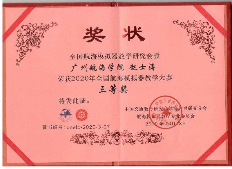 赵士涛-2020年全国航海模拟器教学大赛-三等奖